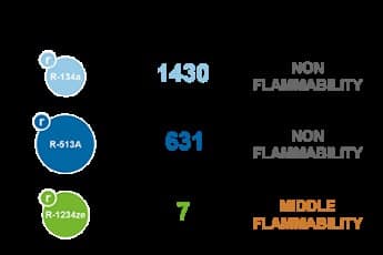 R513a gazı, eko-sürdürülebilir bir gelecek için azaltılmış çevresel etkiyle düşük GWP’ye (Küresel Isınma Potansiyeli) sahiptir.